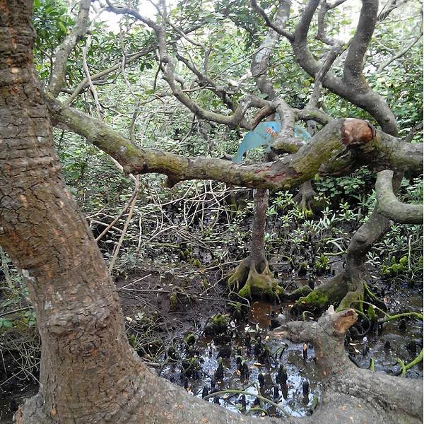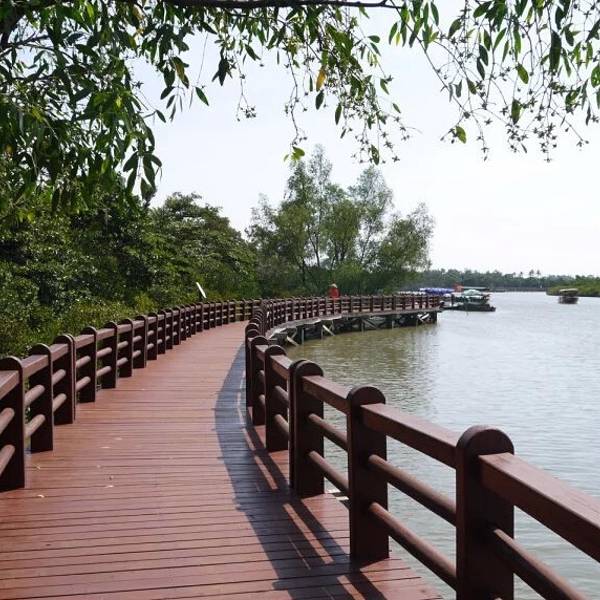 2、到了终点下车后,不要在售票点买门票。建议返回到大路上,顺着来时车前进的方向再走500米,就看到红树林保护区的建筑和标识。这里有修得很好的栈道可以到红树林里游览,不要门票。