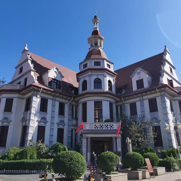雕塑背后是一座漂亮的外国式建筑,原来这就是袁世凯的故居。