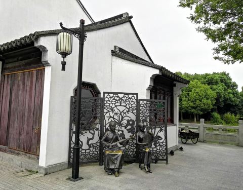 在甪直古镇游览完保圣寺,沿主街往前走不远,就到达来到沈宅,沈宅建成年代并不久远,好像是130年前,不过这里是甪直古镇保存完好的豪华宅第,现存的部分就挺大的,宅子中间还有院子,据说想当年那全部沈宅更大,当年有沈半镇之说。印象深刻的是沈宅里面有个厅里坐着个爷爷辈的书法家,说是写藏头诗啥的,要是真沾上边,可能是破费银子不少啊!除非对他的书法特别欣赏,否则看看而已!