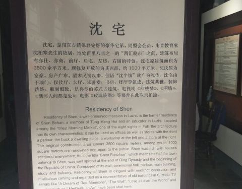 沈宅是典型的江南富家建筑,建于清同治九年(公元1870年),是沈柏寒先生的故居。沈宅在甪直算是大宅子啦,很气派。电视剧《红楼梦》、《围城》等都曾在此取景拍摄。