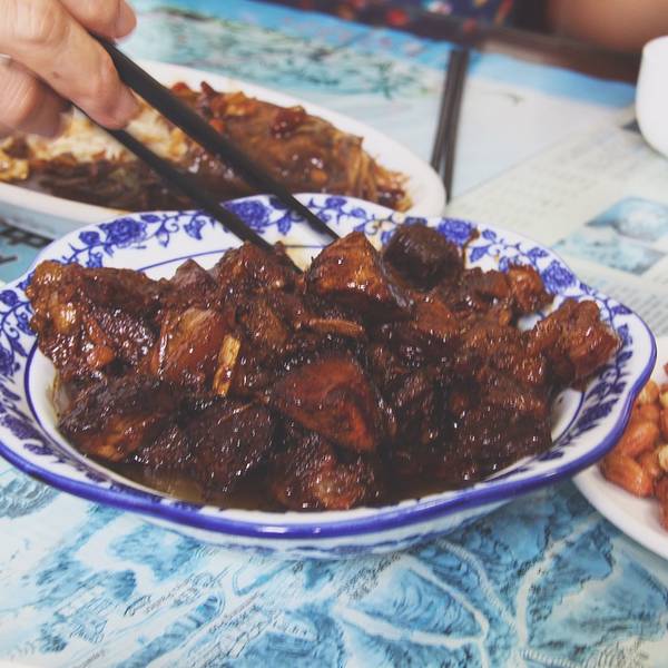 10月3日早上8:20从南京出发,导航直接设置呈坎,路线往铜陵、青阳方向。全程345公里,预计4个小时可以到,不过路上个别路段小堵。 快到呈坎时,大约13:00多。我们直接导航到潜口古民居附近吃饭,在大众点评上找了评价第一的店:水香园土菜馆。这个时候人还很多,需要自己紧盯哪里有空桌赶紧占。店里忙得顾不过来,我们都是自己动手,端菜添饭。 点了几个特色菜:臭鳜鱼、毛豆腐、红烧肉、桂花糕、小炒笋干、空心菜(五个大人一个小孩子,一共点了6个菜,没点鸡汤,因为很慢。)