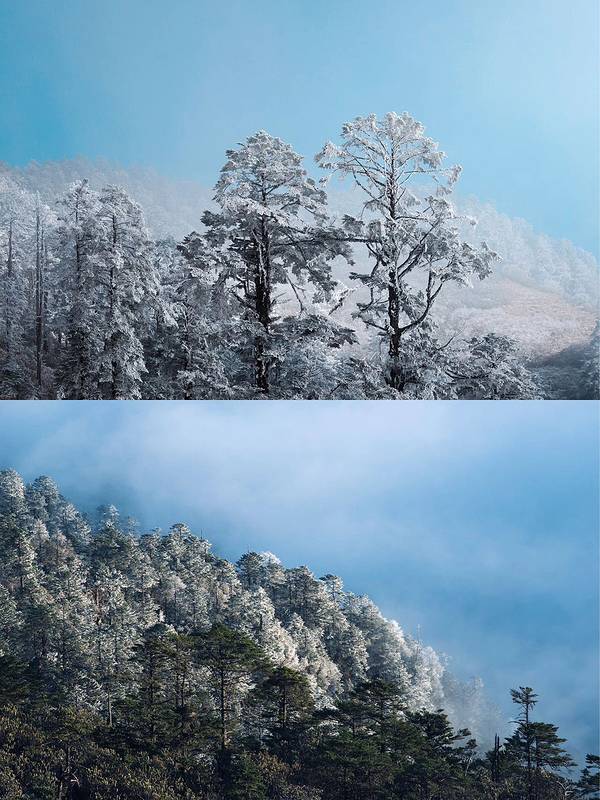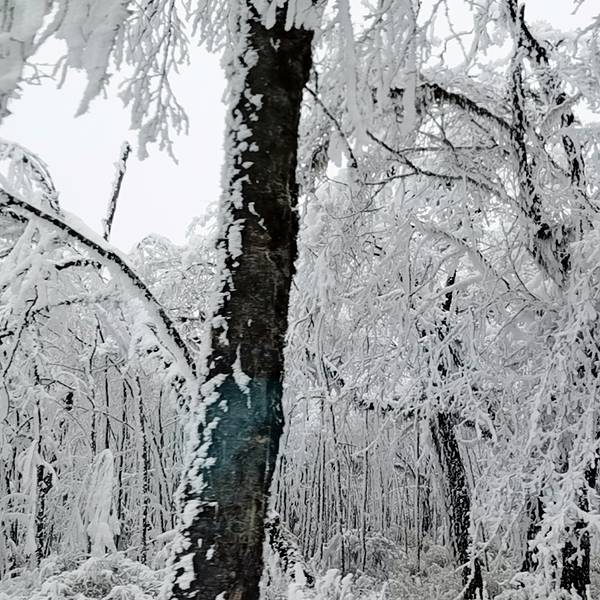 晶莹剔透的雾凇在枝头绽放,千姿百态,如珠帘玉盘、似玉树琼花