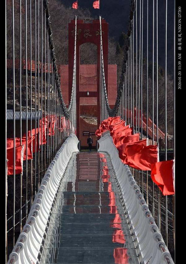 在这上行的过程中,有两条平行的人工吊桥很醒目,一条是玻璃吊桥;另一条是“抖音挑战桥”: