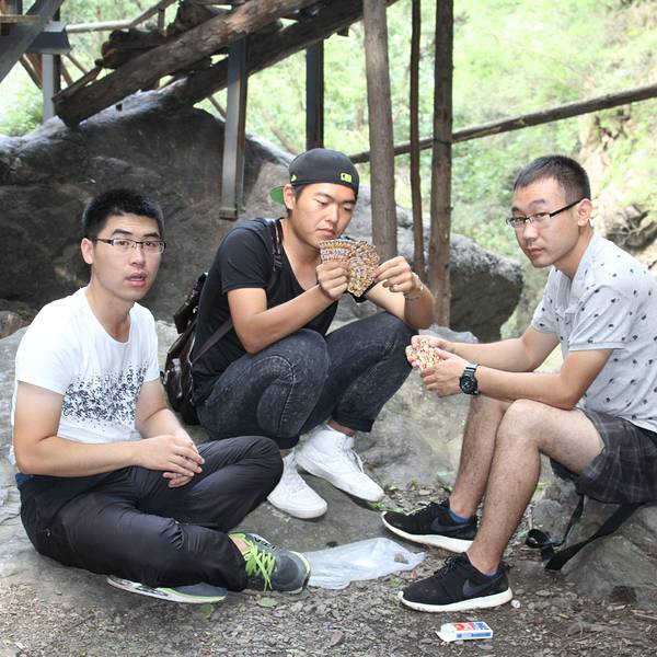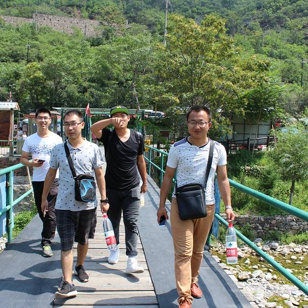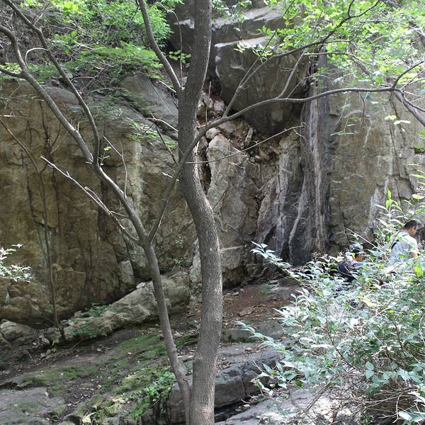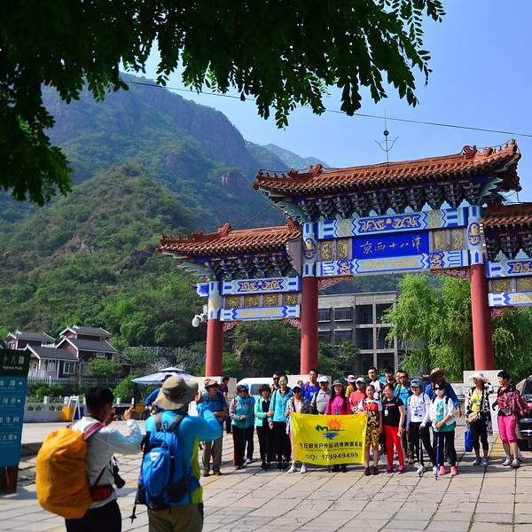 停好车,顺着停车场的出口上行100多米,就来到“京西十八潭”景区入口的大门牌楼处。彼时正好有一支来自河北任丘的户外队伍在此合影留念。除他们之外,好像整个景区里大多是以家庭为单位的亲友孩童的休闲郊游,或者是三两个小范围的驴友登山锻炼。