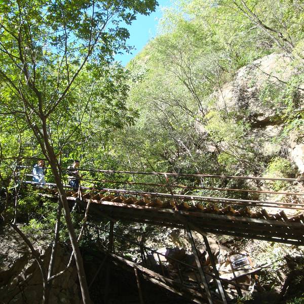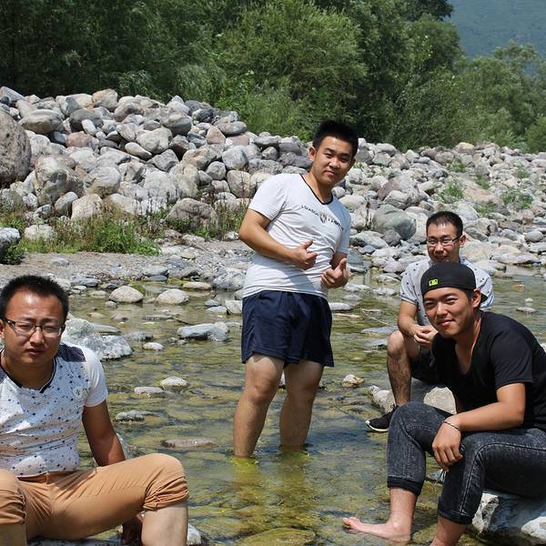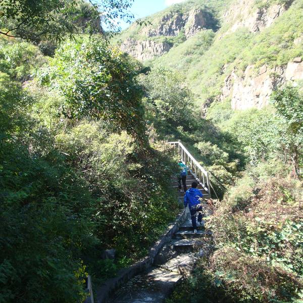 10月的京西十八潭,蓝天白云,青山碧水,对于久居闹市的我们来说,格外让人神清气爽。进入景区后,沿路直行,大概2.5公里的地方有岔道,一条往山上走,另一条走沟底,建议走谷底这条路。爬山很辛苦,我们去爬的山,山腰有一个小的观景平台,也看不多远,就在山腰走,然后又下到谷底。感觉还不如在谷底走,省劲。我们只到第一瀑布,(这里离景区门口也有5-6公里)感觉腿有点吃力,我们就往回走了,后面还有二个瀑布,据说可以走进去10几公里。回来我们就毅然走谷底,一路有许多小水塘或小水洼,路有点滑,但省时省力,景色不错。小水塘的水清澈见底,还有许多小鱼,基本每个潭都有。值得一提的是,进景区后不远,就可以下到永定河边,河床很浅,水清,但比较滑,重要的是,吃货们注意啦,这里可以自带用具来烧烤哈,很惬意有木有?