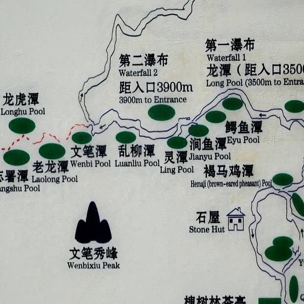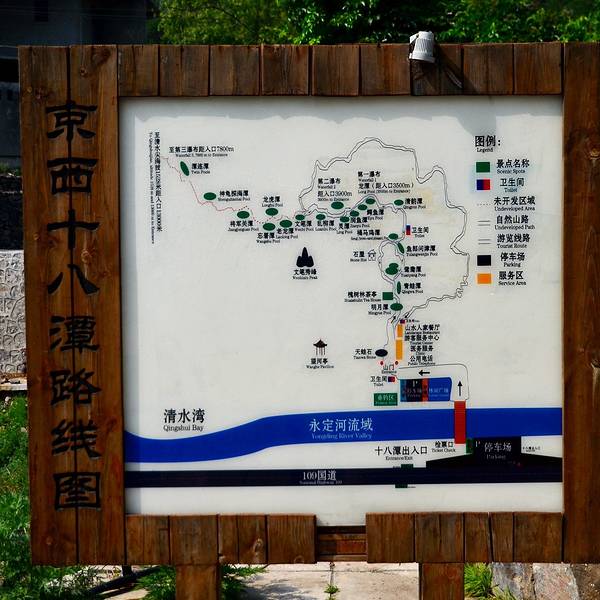 十八潭嘛,一定是潭水很多。看了看游览图上眼花缭乱的潭水名字已经晕了。根据自己的体力,选择了一个距离这里4公里的“第二瀑布”吧,往返又是近十公里,应该景区风貌略见一斑,回去可以做个点评写个小篇儿了。