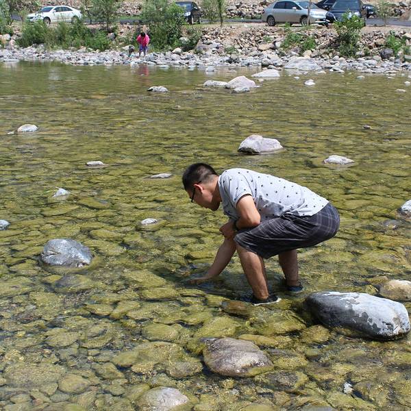 在我行进的过程中,遇到很多潭水。每一处的潭水都有个好听的名字,不过那水面感觉比我巴掌大不了太多,看上去怪惨的慌的。潭水周围聚集了很多家庭的小孩子玩水,用简单的笊篱尝试着在潭水里抓鱼。