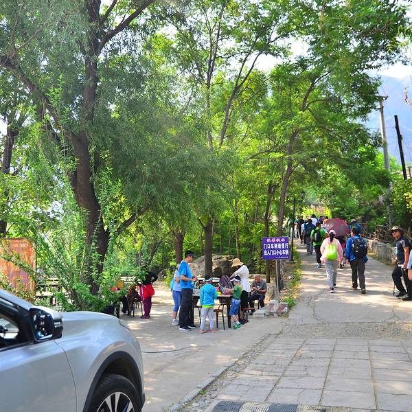 停好车,顺着停车场的出口上行100多米,就来到“京西十八潭”景区入口的大门牌楼处。彼时正好有一支来自河北任丘的户外队伍在此...京西十八潭的门票价格应该是35元吧,我因为持有年卡没花钱,好像停车也没有缴费。