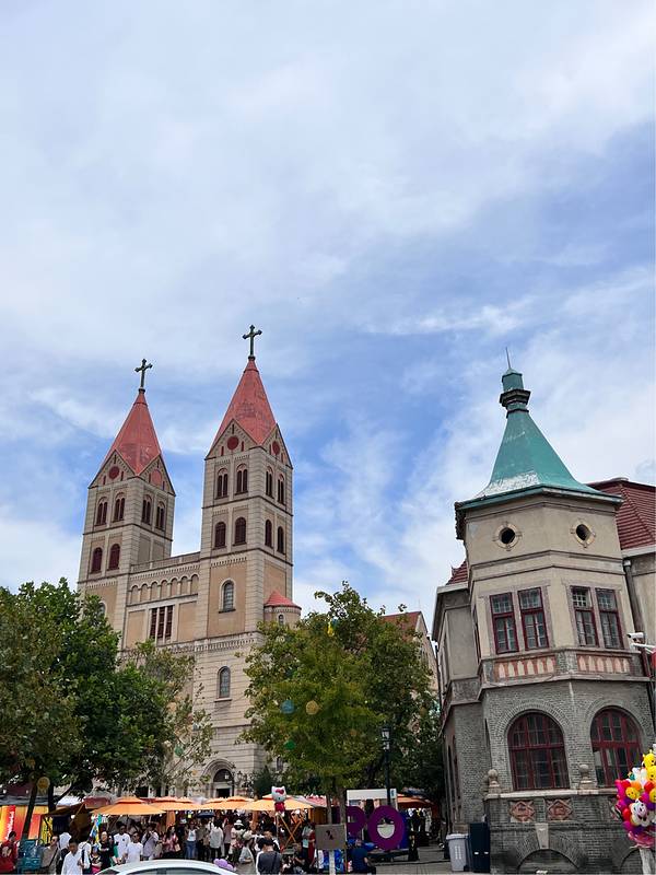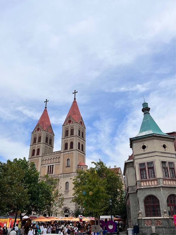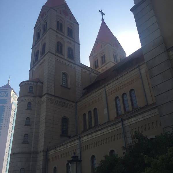 我的路线:我先是乘公交车到栈桥,看完后一路沿着海边走到火车站,...哥特式的建筑风格,造型很奇特的一座教堂。