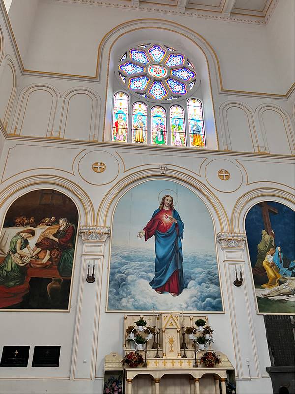 肃穆庄严之圣弥厄尔教堂在青岛栈桥的旁边,走几步路就是圣尼厄尔大教堂,也是当地非常有名的景点之一了。虽然我不是一个基督教徒,但来到这里,还是忍不住想要买票进来参观一下,表达一下游客对此地的敬意。之前出国在欧洲游玩的时候去...在青岛栈桥的旁边,走几步路就是圣尼厄尔大教堂,也是当地非常有名的景点之一了。虽然我不是一个基督教徒,但来到这里,还是忍不住想要买票进来参观一下,表达一下游客对此地的敬意。之前出国在欧洲游玩的时候去过不少教堂,尤其是巴黎圣母院,还有德国的教堂,印象都非常深刻。在青岛的这个教堂,应该说也体现了中世纪欧洲的各种装饰和绘画风格。教堂内好几座雕塑以及好几幅壁画都描绘了耶稣受难和接受洗礼的场景,人物表情非常生动。门票10元/人,教堂外还有个小型市集有些摊位做公益摆摊,价格也都不贵。