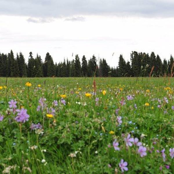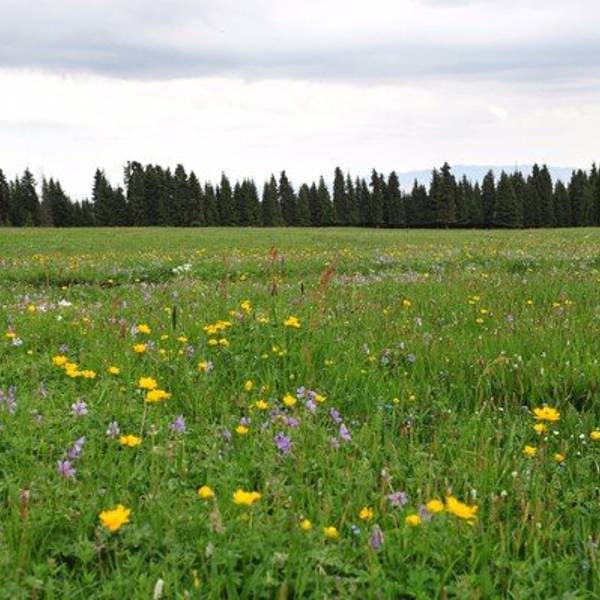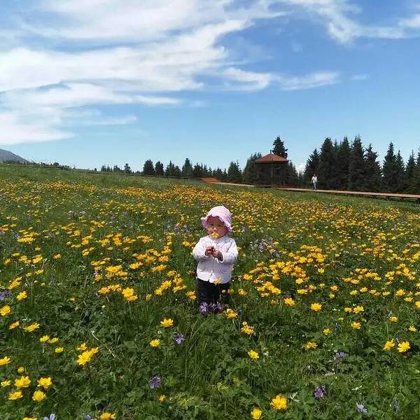 到达菊花台,草地用铁丝网围着被保护起来,主要是防止牲畜吃草,3年前是秋季来这里,只有星星点点的...到达菊花台,草地用铁丝网围着被保护起来,主要是防止牲畜吃草,3年前是秋季来这里,只有星星点点的黄色小菊花,现在是各色花草竞相开放,争奇斗艳,煞是漂亮。