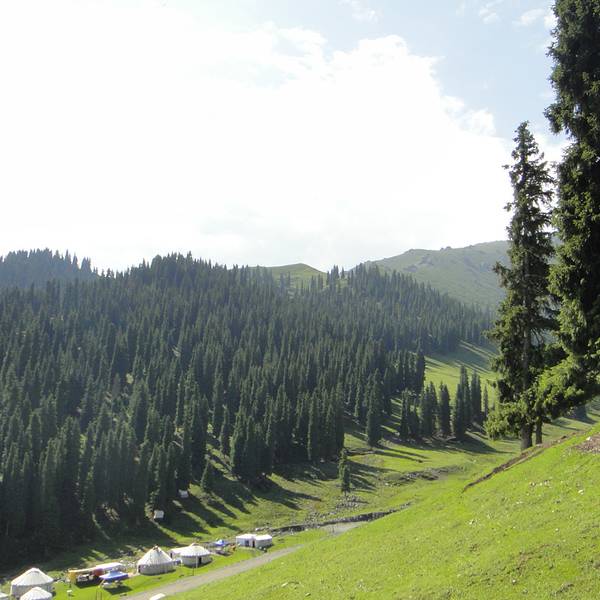 菊花台位于乌鲁木齐南郊甘沟乡境内,这里是一处典型的天山草原牧场,用地理学的术语说是一块缓坡倾斜的洪积扇台面。沟底溪水蜿蜒,北面苍松密布,南面绿草丰茂。在平坦宽阔的台面上,每年的4月至10月间就会开满野菊花,芳香袭人,故名菊花台。整个菊花台海拔2000-2400米,面积约500公顷,密林间经常会有马鹿出没,雨过天晴之后,树下会钻出大片蘑菇任你采摘。野菊盛开的时候满眼的金黄色,流芳溢彩,阳光将白云的影子投射在绿草之上流水般款款漫动,更为景区增添了—道别样的景致。漫步其间,不由得令人神采飞扬,遐思翩翩。喜欢摄影的朋友可趁晨昏之际在这里找到灵感,拍出美的作品。菊花台东侧的中梁台上有中科院乌鲁木齐天文台,这里建有我国目前大的射电天文望远镜,直径25米。