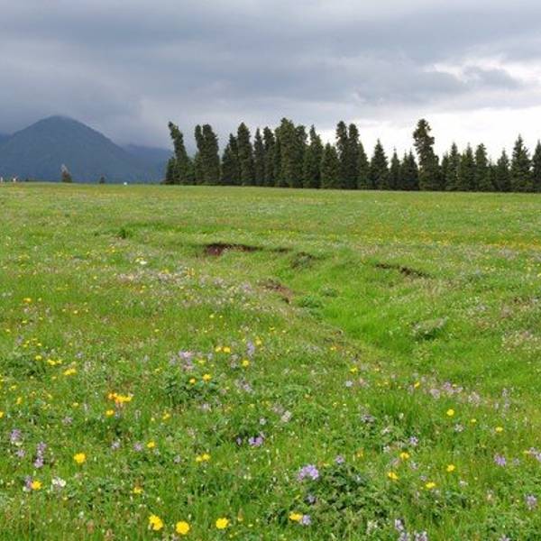 沟底溪水蜿蜒,北面苍松密布,南面绿草丰茂菊花台位于乌鲁木齐市南郊的甘沟乡,这里是一处典型的天山草原牧场。沟底溪水蜿蜒,北面苍松密布,南面绿草丰茂。在平坦宽阔的台面上,每年4月至10月间就会开满野菊花,芳香袭人,故名菊花台。