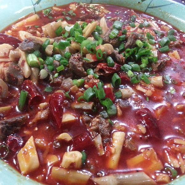 兔头面上浇了一层辣椒油,很香,不过肉有点老。鸡杂抄手最好吃,很入味料很足,然后就是脆哨抄手,绍子很干切的很小,确实不错,炖鸡还可以,整体来说好吃,而且24小时营业,非常棒!
