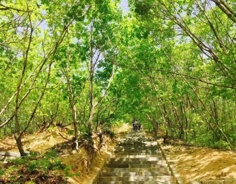 山不是很好爬,不是全部都是楼梯蹬的那种,,,,距离市区四五十分分钟车程,没有门票,,