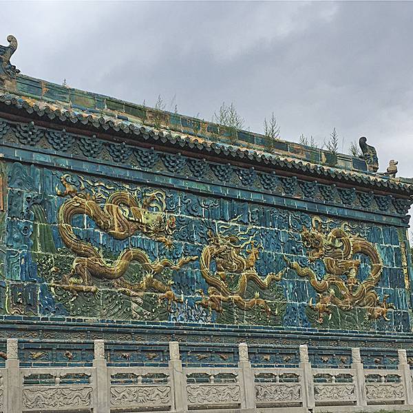 从大同道云冈石窟的路上,门前有三龙壁。挺好的