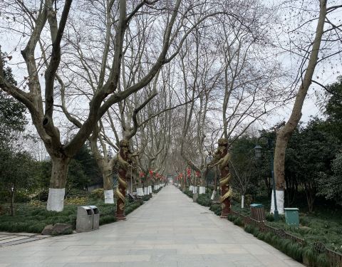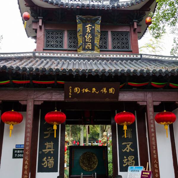 黄龙洞景区在西湖风景名胜区北面,黄龙体育中心心对面,又叫“黄龙洞圆缘民俗园”,是杭州的老牌景区。这里不仅是个环境不错的城市公园,也是当地人和游客常来寻找婚缘的地方。此外,景区内的“黄龙吐翠”是新西湖十景之一。进入景区,首先映入眼帘的是一块石头,上面刻着巨大的“缘”字,点出了景区的主题。景区内几乎所有的景观都和“龙”和“缘”有关,步道左边的“刘海戏蟾”的雕塑,右边投缘池中,有代表财、情、姻、文、仕、子的六个童子抬着古铜钱的塑像。一路直走是的杭州西湖风景名胜区-月老祠,旁边的西湖风景区-方竹园中有不少刚劲挺拔的方竹,它的特别之处在于,有的竹竿看是圆,摸是方,在杭州一带少有,也是这里的一大特色。走出西湖风景区-方竹园,正对面就是景区的传统主景,新西湖十景之一的“黄龙吐翠”。不过这一景观看上去可能会比较让人失望,人造的黄龙头喷出的水流经几米高的石阶流进一片不大的水潭,景色乏善可陈。继续往里,走过西湖风景区-黄大仙洞,顺着小路往左走便是圆缘台,台中有一巨大的同心锁,暗喻“金玉良缘”。来此的恋人或好友可在旁边的红线上挂上同心锁,日后重游时再来寻回,别有一番滋味。此外,景区内有一戏台,时常会有戏曲表演,可免费观看。坐下来喝杯茶,听听戏,也是十分享受的事儿。