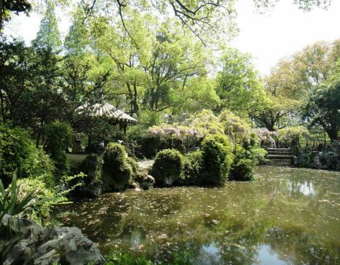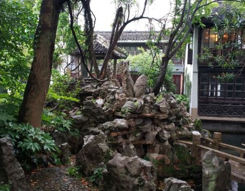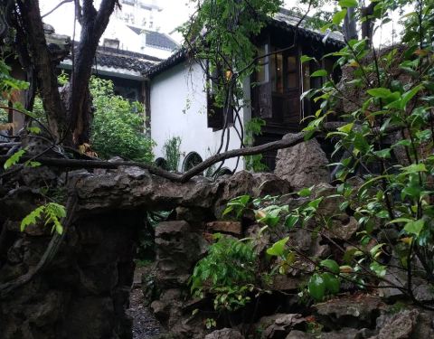 《立夏访南浔颖园》颖园老楼饭店开,推窗浏览故楼台,百年沧桑立夏雨,狮林风韵今安在?古树参天藤缠树,玉兰老桂尚未开。太湖山石洞玲珑,潇洒幽池照青苔。