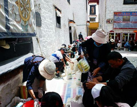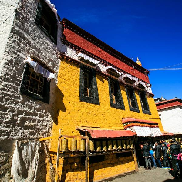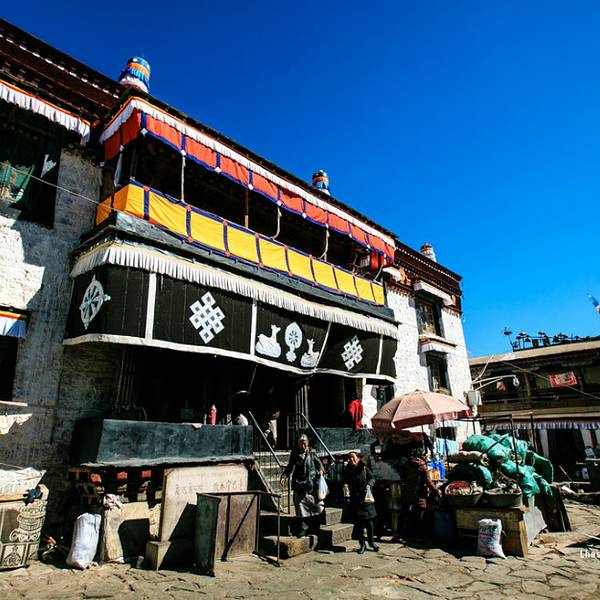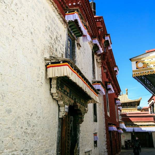 木如宁巴是与居民大院混在一起,也不受门票。拉萨有句老话:“先有木如寺后大昭寺”。这是木如宁巴外面首先是木如宁巴,即木如旧寺。木如宁巴就在八廓东街向西的一小巷尽头。与大昭寺一墙之隔。拉萨有句老话:“先有木如寺后大昭寺”。木如宁巴是与居民大院混在一起,也不受门票。