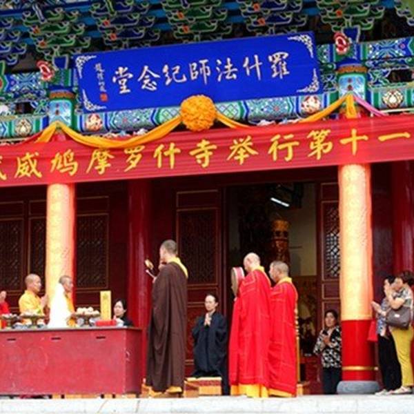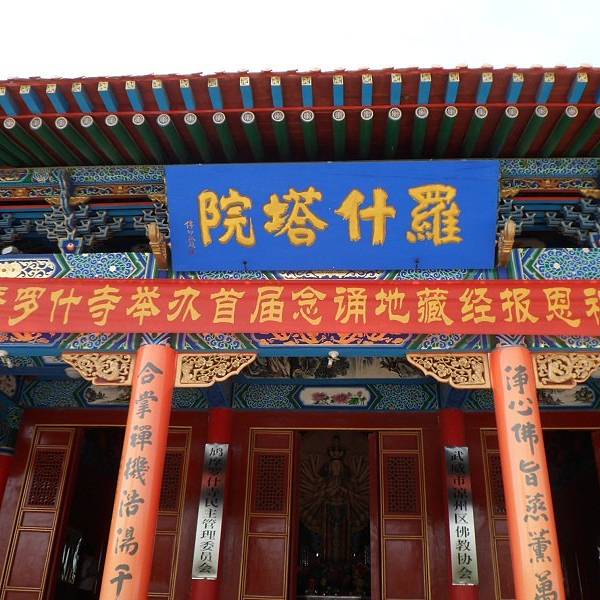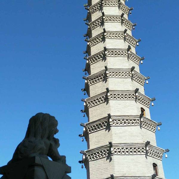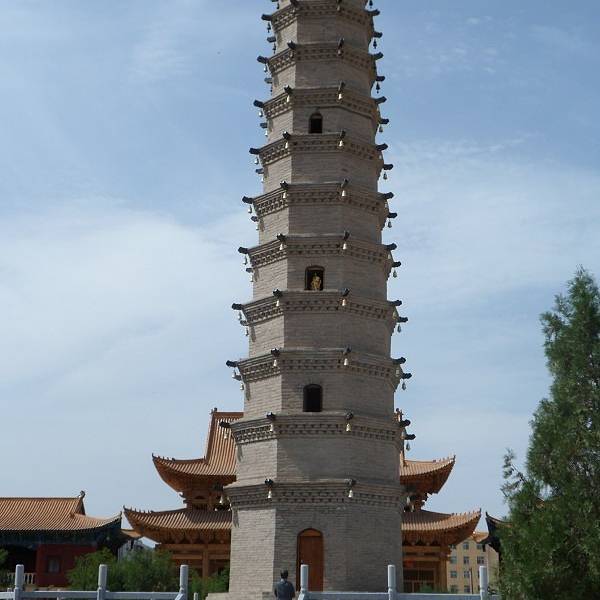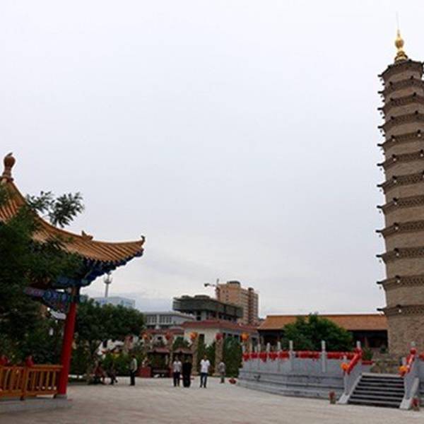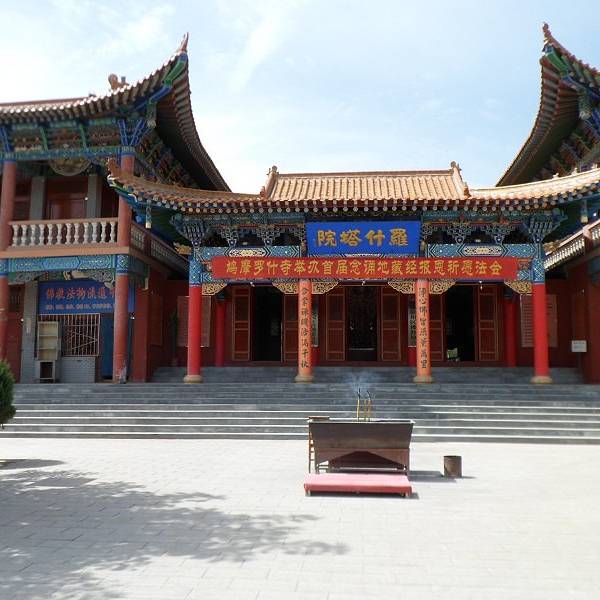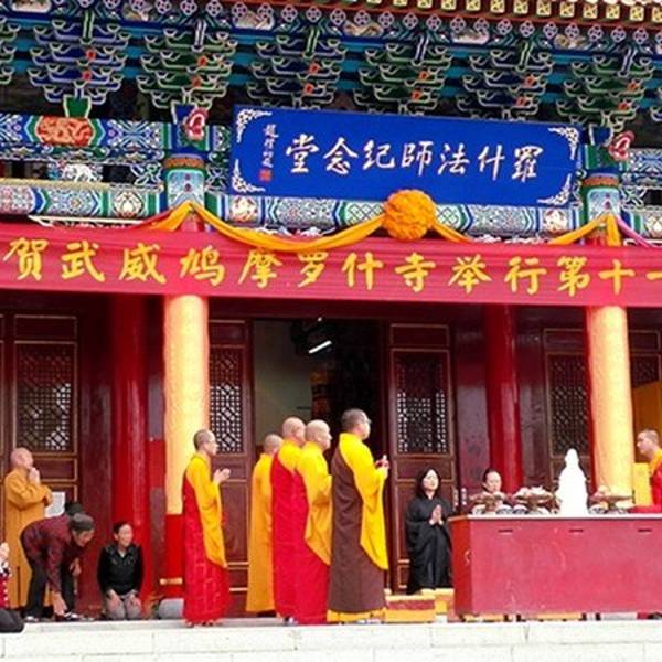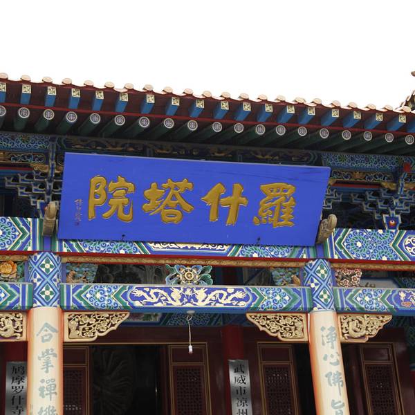 矗立在武威北大街,是为了纪念鸠摩罗什在武成弘扬佛法、翻译经典的功绩而建造的。罗什寺塔最早建于后凉(386―402),唐时曾大力扩建,明、清皆有修葺。其间于明代成为陕西凉州大寺院,英宗正统十年二月十五日,为罗什寺院颁发了大藏经。并下了圣谕,谕中道:“刊印大藏经,颁赐天下,用广流传,兹以一藏,安置陕西凉州大寺院,永充供养。”此谕现完好保存于武威市博物馆。清康熙二十六《重修罗什寺碑记》载,经过重修的罗什寺“前后三院,焕然一新,乃五凉之福地;壮丽改观,诚河西之胜地也”。