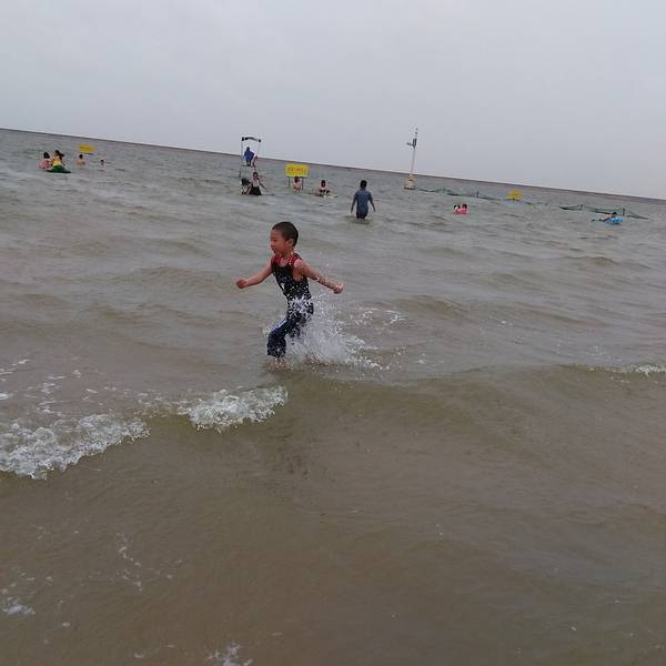 天气太热,都晒黑了,海水不是特别干净
