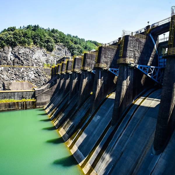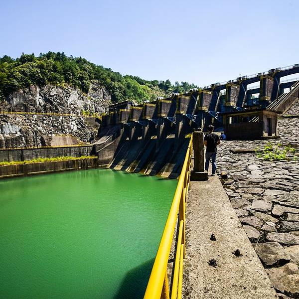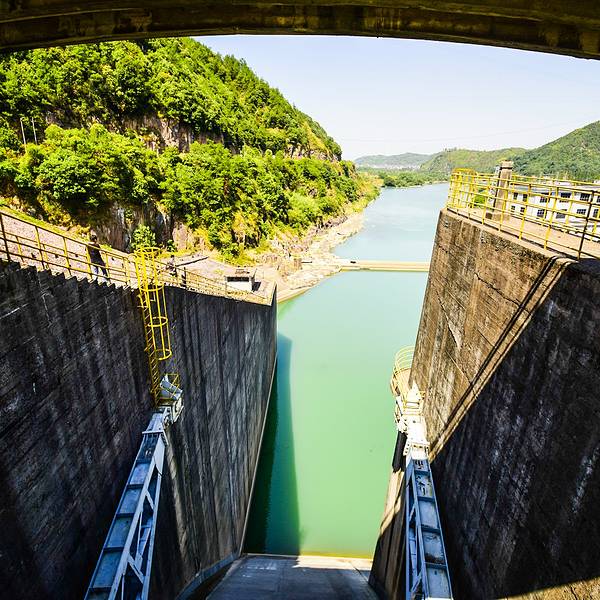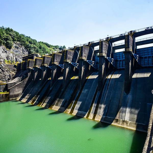 这是国家大型水利工程乌溪江水库的结果,在乌溪江水库的作用之下将高处的水源通过大坝拦截让下游的部分水深更深厚,河床更低。加上业已存在的优质环境和人群少而带来的低生态印记的影响之下形成了风景如诗如画般的景色。又因为这个乌溪江水库上下游总体的形状宛如龙状的分支流的景观就被誉为九龙湖了。其实呢,九龙湖的名字带有龙不仅仅跟它湖面的形状有关系,更与中国水利工程风水学有着更直接的关系。中国老祖先有专门研究水利工程与风水的经典叫作《水龙经》突出了龙这个虚拟的东西所蕴含的空间几何学原理与生态气场学的理论。所以,龙这个虚拟的东西就一直被注入了与水有关的神物了。龙就是水的最高统治者,在民间普通百姓眼中龙在的地方就是水无法胡作非为的了。现在知道了九龙湖历史背景之后就看看这里的景色吧,九龙湖的景色就像是一幅令人如痴如醉的胜景,尤其是在蓝天白云之下,整个湖水呈现出蓝绿色的景色,远远望去就像是一片巨大无比的蓝宝石。从水库大坝上从高往低看整个九龙湖一种令人望而却步的险境让人不禁的打颤。从大坝的下游网上看一种从天而降的庞然大物让人叹为观止。