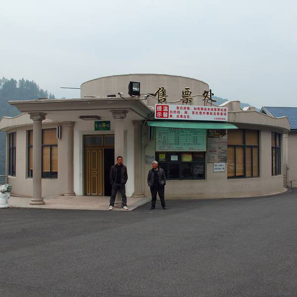 原来长的是这样子,湖水那是相当的碧蓝,是避暑旅游的圣地。上船游玩的安排就留待下次吧在忂州南下了高速,走了很长的连接线,拐了很多的弯,才到达九龙湖。售票处前有个停车场,要收我10元,“我拍几张照片就走”,他便没下一步动作了。
