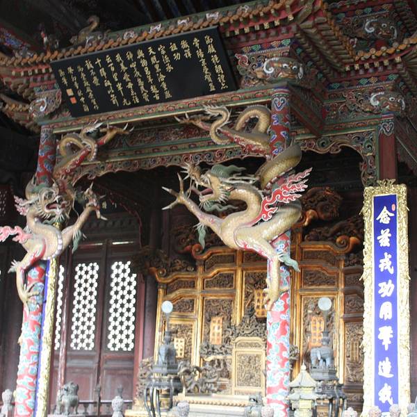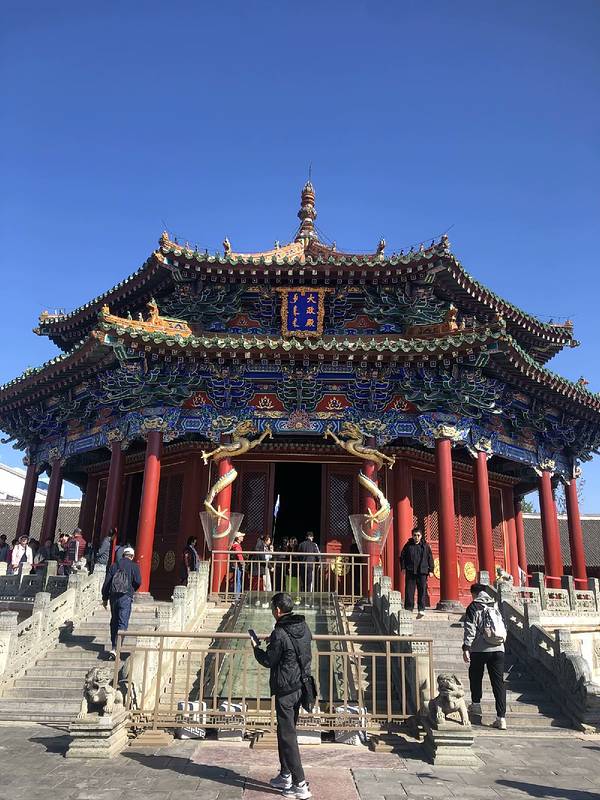 作为中国仅存的两大宫殿建筑群,标配当然是大殿,御花园了。不过沈阳故宫有个十王亭很有特色,按八旗分,每个旗一个亭子,据说是为了纪念当年行军打仗帐篷会议而建,每一个里面都有些当时的展览。崇政殿,雕梁很细致又粗犷,这里是最中心的位置。屋檐,里面有很多展示区,这是其中一个,线条很大气。石刻绝对的文物华表瓷器门环乌泱乌泱的人十王亭 展开