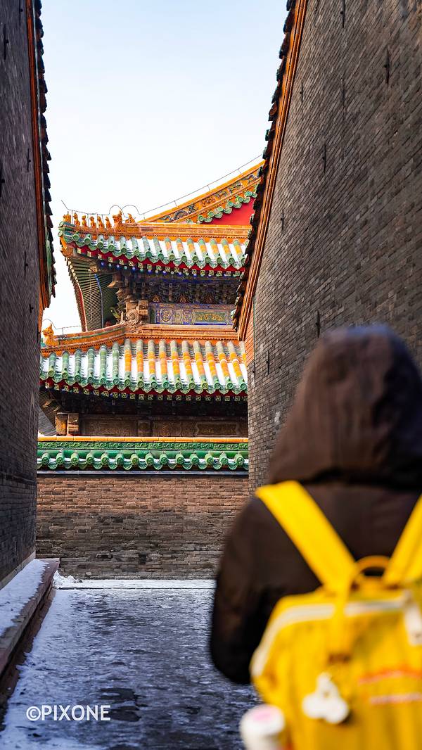 沈阳 故宫真的非常气派,和 北京 故宫一样,都是红墙,寻一处红墙,玩起雪来可是真的漂亮。说一下开放时间(和南方的景点开放时间有点区别):