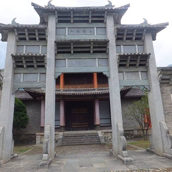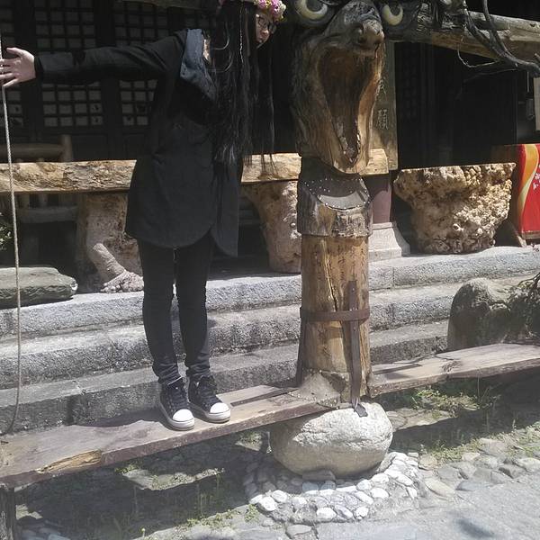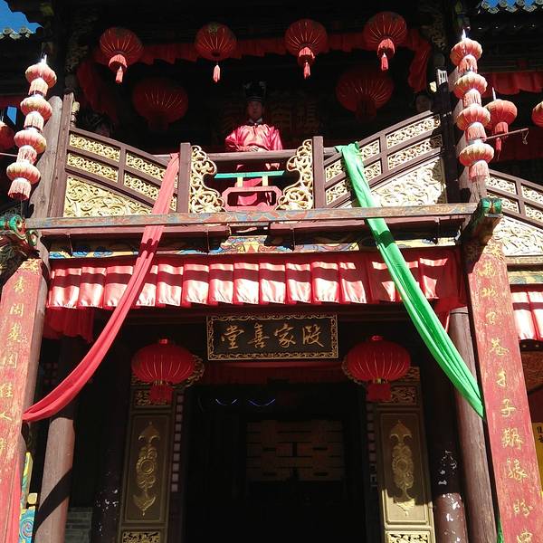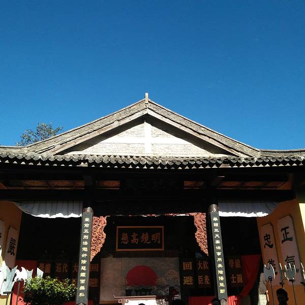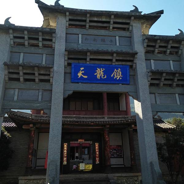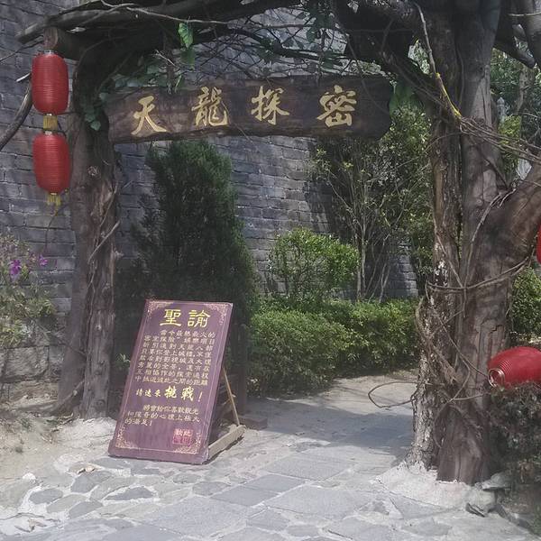 讲了大概30分钟左右,还有一个主持婚礼的人新郎新娘和迎亲队伍还有一个向四大恶人开炮和囚犯车一类的游玩项目之后跟随新人的脚步来到了德胜门观看舞狮表演这个粉色的小狮子徒手爬竿放竖联的绝活引的大家拍手叫好。德胜门的右边有个皮影馆墙上的皮影都非常精致走的累了坐下来吃了一碗好吃的碗杂粉,10元/碗,味道有些辣。穿过德胜门来到了一个大殿广场中和门大殿,是大理王的朝会处。现在里面可以穿古装照相出了大殿往右走来到了高处天龙镇的牌匾处里面有一个庭院里面有一些古装的摆设很精致的镜子床铺屏风也是很漂亮的之后来到一个茶庄,里面是个茶道体验馆。还有一个衙门一个文艺的亭子。最后,玩了4个小时之后,我们乘刚才来的旅游车返回了游客中心。
