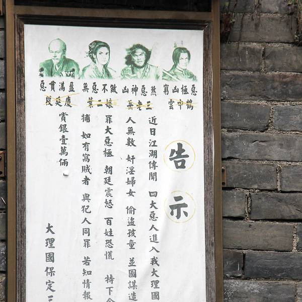 在天龙八部影视城细细观赏可以找到众多天龙八部电视剧里和书中的场景,大理皇宫,段王府,聚贤庄、信阳城、西夏石窟、茶花园等。我最喜欢这里的就是可以在不经意的小地方发现惊喜,例如在小辽街的尽头我就找到了“薛神医”家。如果你想在大理买一下礼物回去,那么护国路是必访之地,里面集中了各种少数民族织品、工艺品和滇藏各地特产。