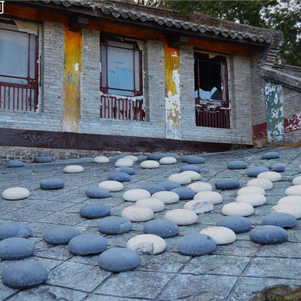 我们骑单车去的,可从国道上景区路后,都是上坡而且还是石头路,只好推车啰。走了两公里到了售票处,摆了两台刷卡机却不让刷卡,说网上订的票不能刷,那是给旅行社刷的。也罢,给现金吧,反正门票打了折的,可更麻烦的是售票处工作人员竟说,它们没收停车费,单车自己保管,掉了不负责。这就麻烦了:单车不让进景区,放在门外停车场掉了景区又不负责,让它收停车费又不收,本来既然景区卖了门票又有停车场,就应该负责车辆的安全,不然怎敢放心进景区玩呢?!正在为难之际,幸好一位好心的游客叫我们把单车锁在他的汽车保险杠上这样我们才折腾了快半小时后走进我向往已久的天龙八部影视城。