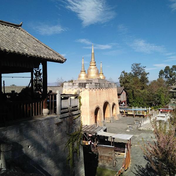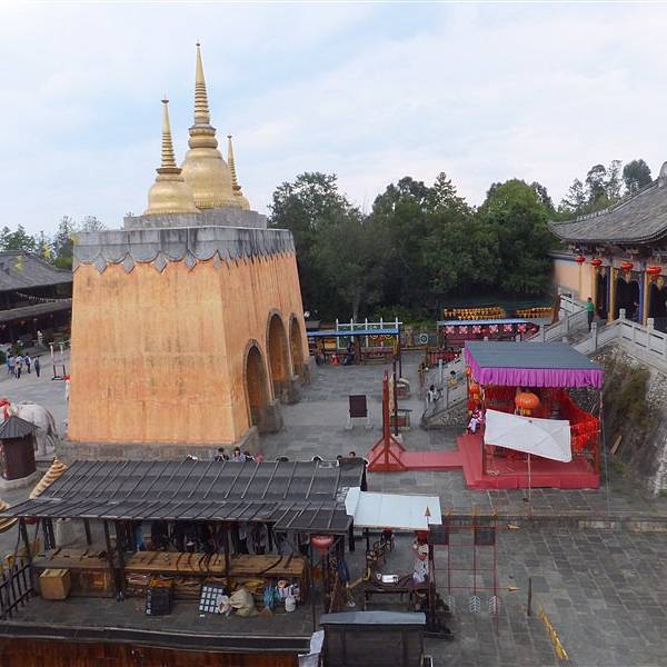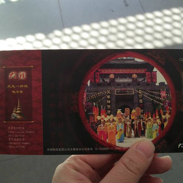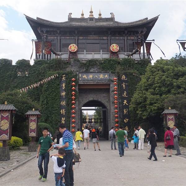 景区内游客不多...天龙八部影视城可以跟大理古城放在一起游览。这里距离大理古城西门约2公里,位于苍山的山坡上,并没有公交车到达。从大理古城步行过来累出了一身汗。建议从大理古城西门三月街打一辆摩托车过来。