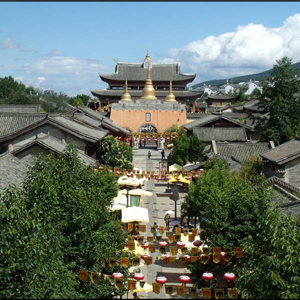 大理天龙八部影视城位于大理古城西侧,背靠苍山,是电视剧《天龙八部》的主要拍摄地,规模宏大。游玩影视城,虽然看到的都是仿古建筑,但依然可以从中感受到当年大理国的繁荣昌盛。 区域分布 天龙八部影视城由三大片区组成:第一部分为大理国,包括大理街、大理皇宫、镇南王府等;第二部分是辽国,包括辽城门和大小辽街;第三部分是西夏王宫和女真部落。影视城内的建筑虽然绝大多数是后期建造的,但是青砖青瓦的看起来也颇有历史的沧桑感。在仿真的古城中走走看看,感受当年大理国和段王爷的生活,运气好的话,还能遇到正在拍戏的剧组,说不定也能遇到你一直仰慕的那个明星呢。 景区看点 游玩天龙八部影视城,主要是观赏这些仿古的建筑,回味电视剧《天龙八部》的精彩,在建筑间寻觅那一幕幕电影中的场景。此外,城中多处都有循环上演的杂耍、抛绣球、复古风味的皮影戏等,徜徉其中,不失为一种愉悦的体验。《天龙八部》拍摄完毕后,又有《茶马古道》、《殷商传奇》、《大理公主》、《十全九美》、《少年四大名捕》等影视剧在此取景。 大理国皇宫与段王府 当年的大理国国力昌盛,经济文化都很发达,所以皇宫也建造的如同宋代皇宫一般金碧辉煌。此外,御书房、寝宫等建筑也都惟妙惟肖,颇具大理民族风情。走过皇宫,即是《天龙八部》中镇南王段正淳的“镇南王府”,前厅、正殿、寝宫、后花园,穿行期间,依稀可以辨认得出戏中的场景。 西夏王国与女真部落 西夏王宫和女真部落距离段王府不远,但建筑风格大相径庭,有着浓郁的异族风情。加之西夏国不设城墙,遂显得更加空旷,仔细辨认下,看是否可以辨识当年西夏国公主当年招驸马的场景呢。辨识不出也无所谓,聪明的当地商贩巧妙的利用这个场景,在此循环举办招亲的表演,不妨凑过去乐呵一番。女真部落的茅草大殿就在西夏王宫不远处,大殿四周有一片茅草屋,让人顿时联想起关外的苍茫风光。 因影视城就位于苍山脚下,所以登苍山的“苍山洗马潭索道”起点就在城内,如果要乘坐索道登苍山,一定要先购买影视城门票后,方可入内乘坐索道,当然,索道的费用是一分也不能少的。
