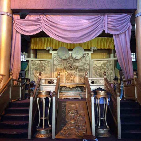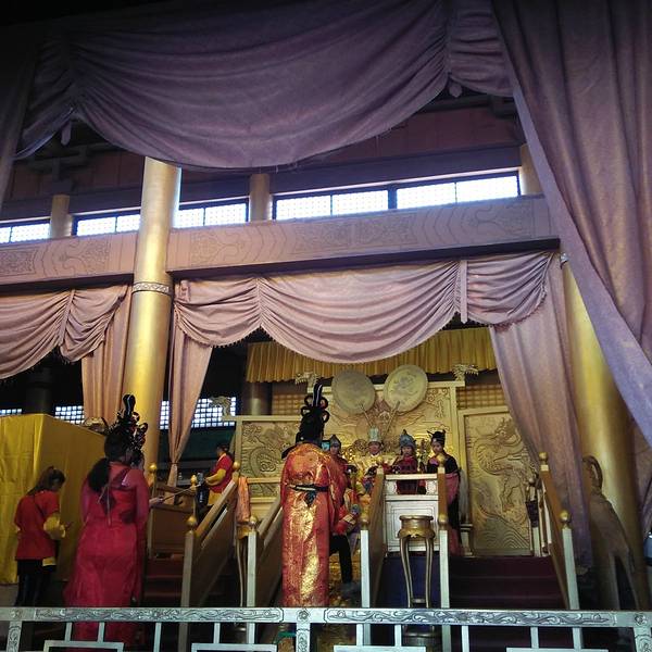 整个景区不大,快点走半小时可以看完,我们慢慢转转,1小时足够了。景点不多而且多数可能是由于维修保护不到位已经残缺破败了,和影视城大门的气势完全不同,里面没什么生气,较安静,在各个景点也没有仿古的表演项目(听说以前是有的,而现在要另外花90元去一个剧场看歌舞节目,不在具体的影视景点表演哪还有啥还原剧情、身临其境的感觉呢,因此没去),没有互动项目,唯一可以参与的项目:扮皇帝照相。收费10元,这辈子皇帝是当不了啦,在家里说了算就很不错,对吧。所以也没照。没了我之前的希望和兴致,也就只好走马观花的看看了,既来之,则安之嘛。
