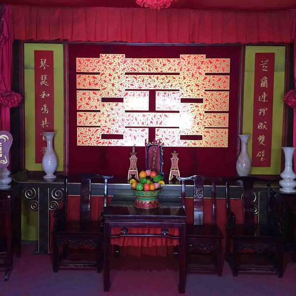 里面还提供古装拍照街道两旁还有一些零食小吃卖还有一个中西结合的黄包车走到这栋楼时,刚进门迎亲的一对新人正在进行抛绣球环节。