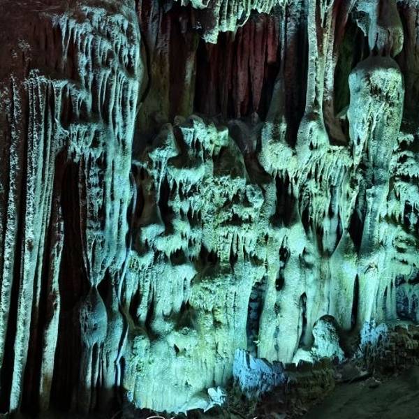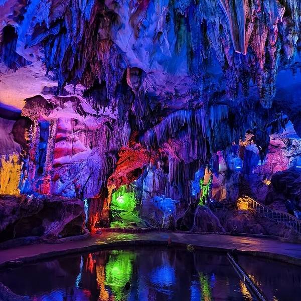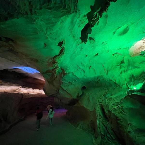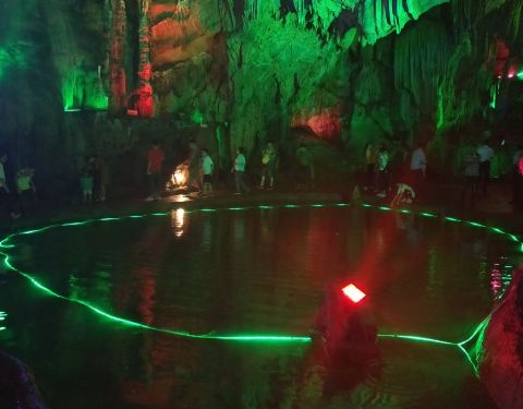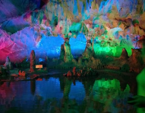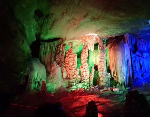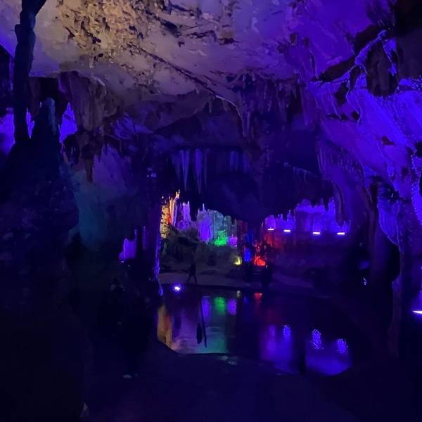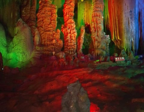 溶洞里挺大,灯光把溶洞打的不真实,感觉像是人工建造的,除了溶洞真的没什么好逛的,55的门票感觉贵了。