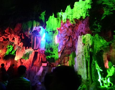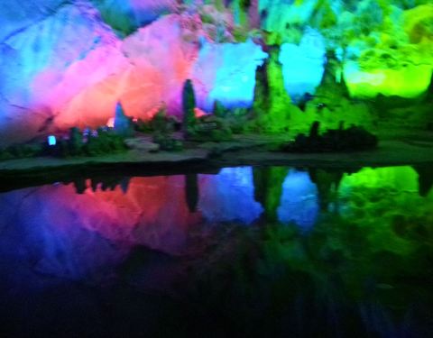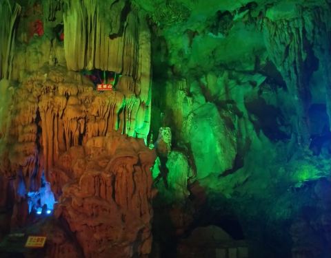 溶洞里人多时真的氧气不足,我都是快步走在人群前面。还搞一-些万紫千红灯光和一个假孙悟空拍照,骗骗小朋友还可以。进里面就是散步加拍照。我反而对它的形成更感兴趣,反而没说。