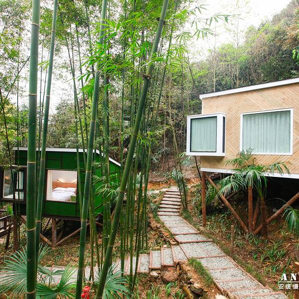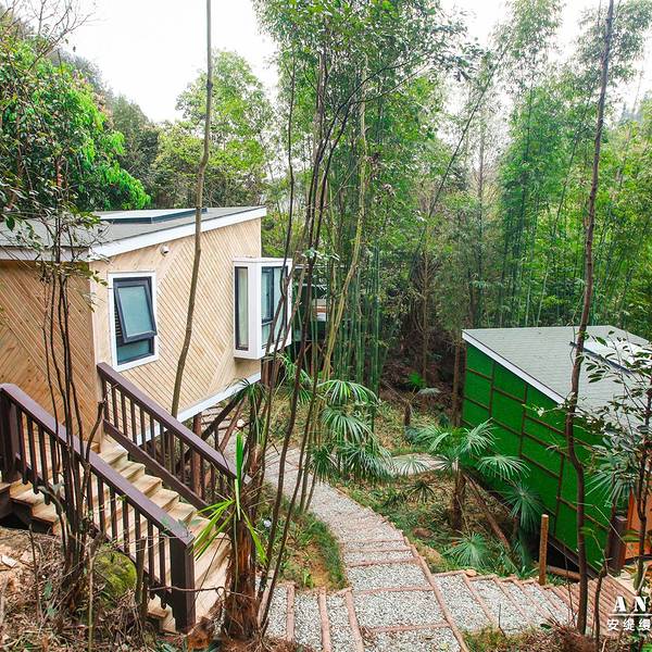 清明时节雨纷飞,伴着小雨路上还有一点小堵,不过这也理解,毕竟是清明节嘛。 不过还是很快就到了度假区。 工作人员很热情的帮我从车上把行李提到了前台,然后1分钟以内就办完了入住手续。 然后就带我去房间。 路上竹林悠悠,我的房间就在竹林深处的最高处。 安缇缦的房间最特色的就是树屋。 他们的树屋并不是找一个大树把客房搭建在树上。 而是在山林中就地选址,用木头在树林间搭建一个小木屋。这样的房间更加自然,也更加舒适。