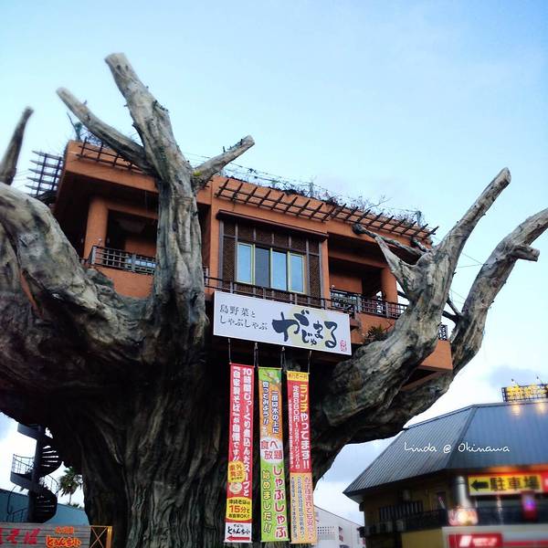 ...家造型很特别的餐厅,在那霸挺有名气,如果晚上去树屋餐厅用餐的话,可以从窗口瞭望夜幕下的那霸港口