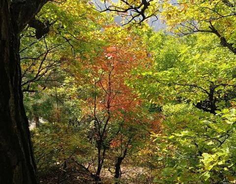 山上风景不错,正赶上秋季,有红叶区,还有崖柏,不论近观还是远望都很美。石膏山总体来说还是不错的