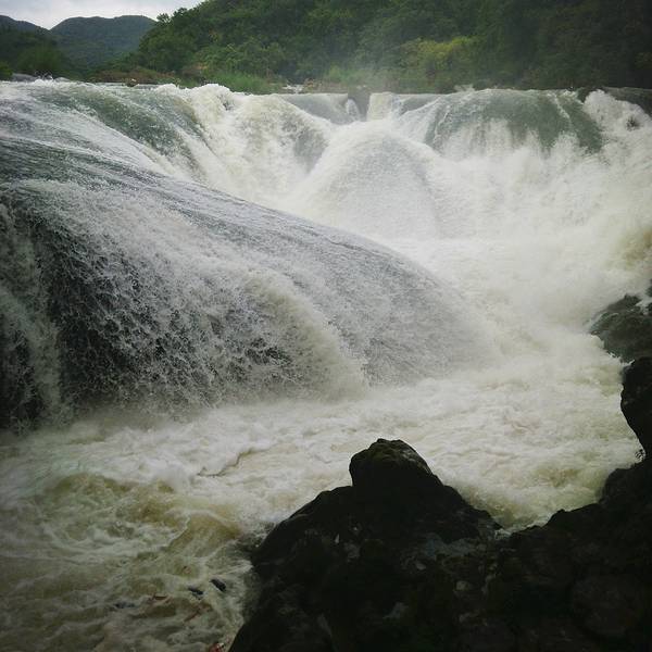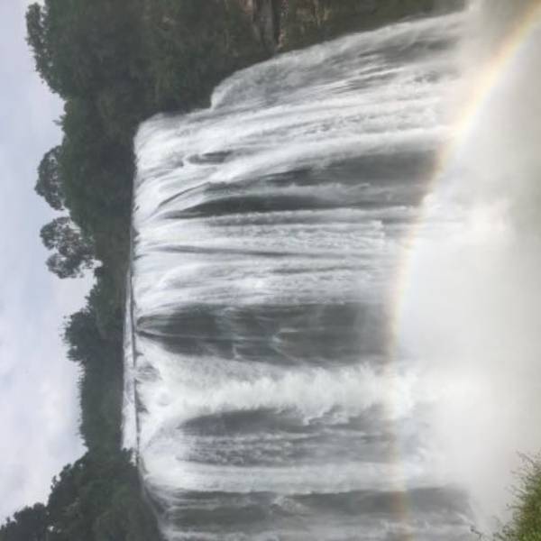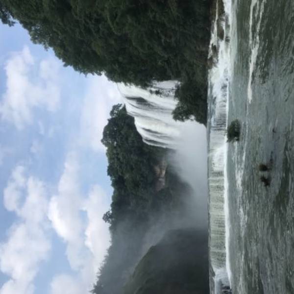 记得带墨镜哦~如果你是选择在一个艳阳高照的日子去看瀑布的话,人在瀑布旁边照出来的全是背光,因为我们在是在7月份水量很大的日子去的,所以 激流勇进的水花泛白,有可能会被闪瞎的感觉...白晃晃的,我看着有点晕~