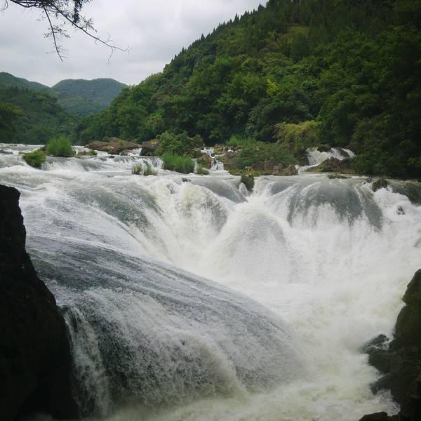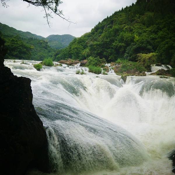 记得带墨镜哦~如果你是选择在一个艳阳高照的日子去看瀑布的话,人在瀑布旁边照出来的全是背光,因为我们在是在7月份水量很大的日子去的,所以 激流勇进的水花泛白,有可能会被闪瞎的感觉,要走到后半段路才能到银练坠潭瀑布,名字起得挺是这么一回事的,站在瀑布边上,看着白晃晃的像银子似一串串地滚入水潭里,觉得还是很特别的,天气挺热的,但是瀑布冲打着山体岩石腾上来的天然大喷,我觉得和雅漾还有薇姿大喷差不多嘛~但是别待太久哦,会不小心着凉的,全身湿泠泠的。 展开
