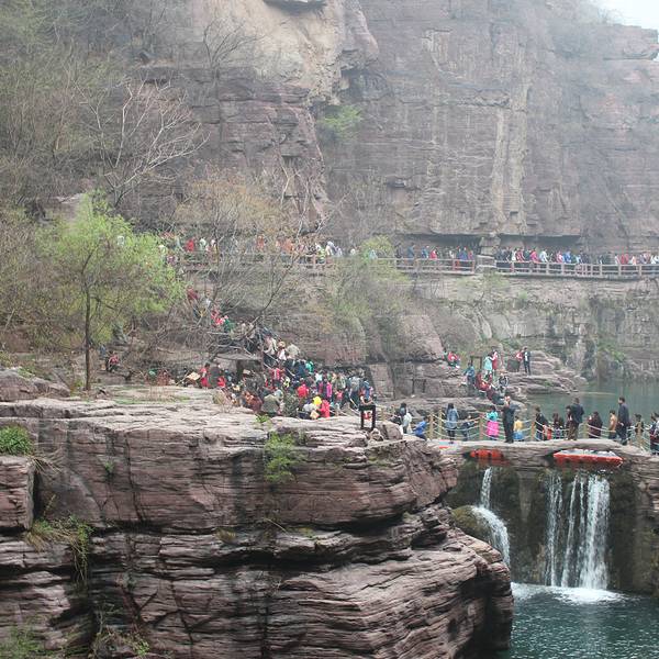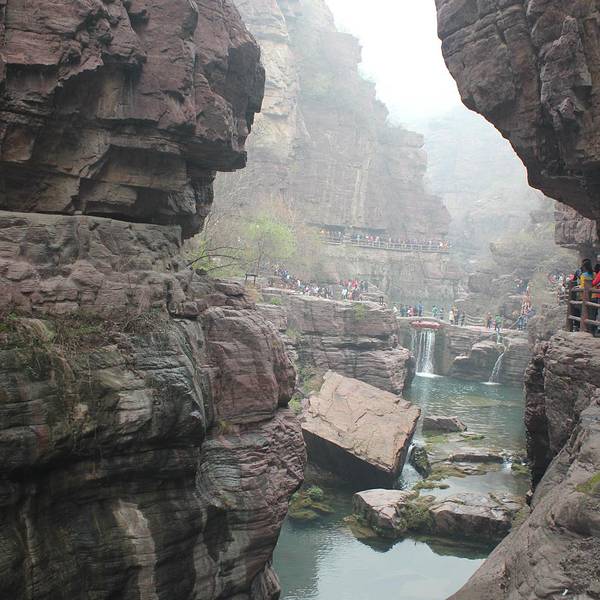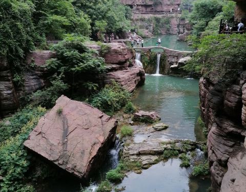 这里是云台山风景区中的精华区域,是游客在云台山的必游之地。 在红石峡能够观赏到中原地区少有的丹霞地貌景色。 在峡谷内能看到各个地质年代的岩石,从4亿年前的石灰岩,到10亿年前的石英岩。
