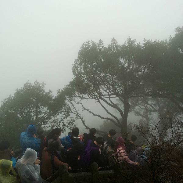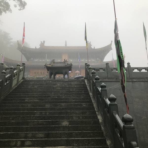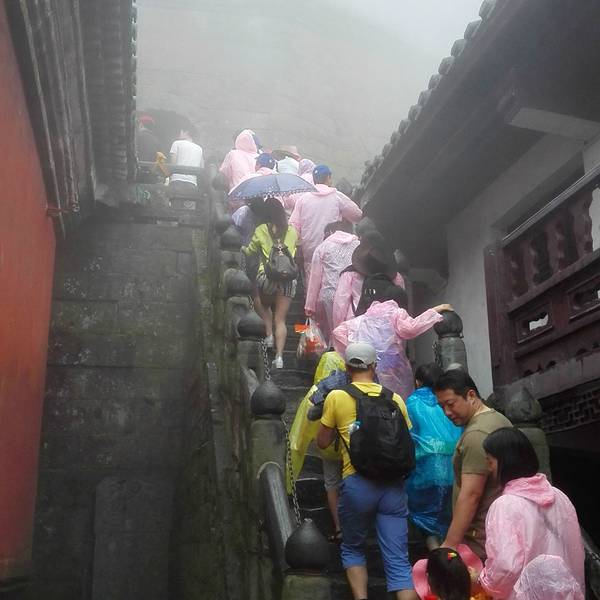这就是金顶,非常小的一个地方,金顶外的柱子,游人再这里摸着柱子转圈,都被磨得发亮了。太冷了,赶紧下山过了三天门,基本到顶了,再往上就是金顶了,爬到这里大概花了3个半小时,这里是个很大的平台,有卖饭的,也有住宿的地方,据说,如果看日出,可以住在这里,当然我是来看雾的,不是看日出的,就不住这里了。到达...过了三天门,基本到顶了,再往上就是金顶了,爬到这里大概花了3个半小时,这里是个很大的平台,有卖饭的,也有住宿的地方,据说,如果看日出,可以住在这里,当然我是来看雾的,不是看日出的,就不住这里了。到达这里大约12点,有点饿了,想着山顶的饭坑定不便宜,就像在华山,一碗泡面23元,一个鸡蛋饼15元。但是我错了,这里有一个斋堂提供斋饭,开饭时间是11:45到12:15刚好赶上,一个15元管够,进门右手边坐着一个大爷,给他15元,开个票,然后凭票到打饭窗口,打饭师傅会给你一个不锈钢的盘子和一个一次性的塑料碗(每人提供一套),可以将米饭和菜放到不锈钢盘子里,然后用塑料碗打汤喝,不够了可以再添。吃饱喝足,准备出发上金顶,虽然距离不远了,但是赶上假期,而且还有从索道上来的游客,全都聚集在这里,排了好长的队伍,排了大约1小时到了售票点(金顶单独售票)27元,然后继续往上排队,此时雾气已经非常大了,什么也看不清了,到了金顶,平台非常小,目测不足100平米,大家都排着队磕头,也没有多少人在意佛教道教跪拜礼仪有什么不同,匆匆到达金顶后赶紧就往下走,此时风大雾大雨大,依旧是排队往下走,从排队上,到排队下,总共花了2小时,估计只在金顶待了10分钟。原本打算再走了下山,到南岩,而此时游客更多了,实在是不想再挤挤挤挤挤挤了,直接坐索道下山,索道下行70元,上行80元,到达琼台。 展开