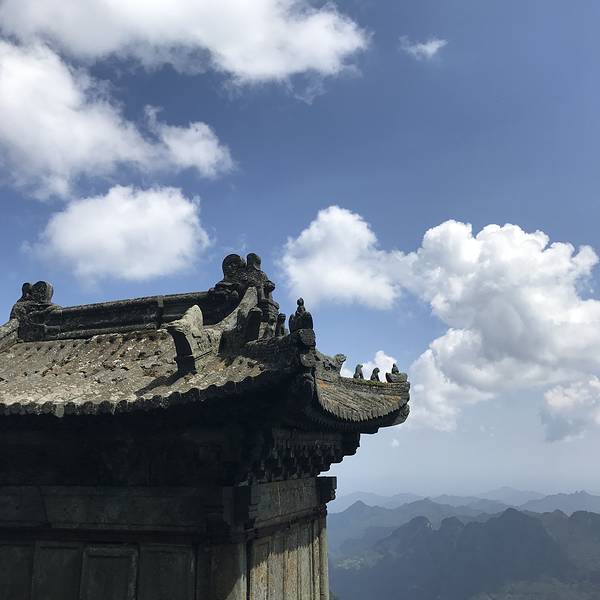 群山中的最高峰,阳光大的时候风景很好。最后坐的缆车下山,旺季上山90元/人,下山80元/人山间还有小溪流路比较逗,难爬金顶上还有一圈城墙到顶的金殿,两边还有道士。群山中的最高峰,阳光大的时候风景很好。最后坐的缆车下山,旺季上山90元/人,下山80元/人。