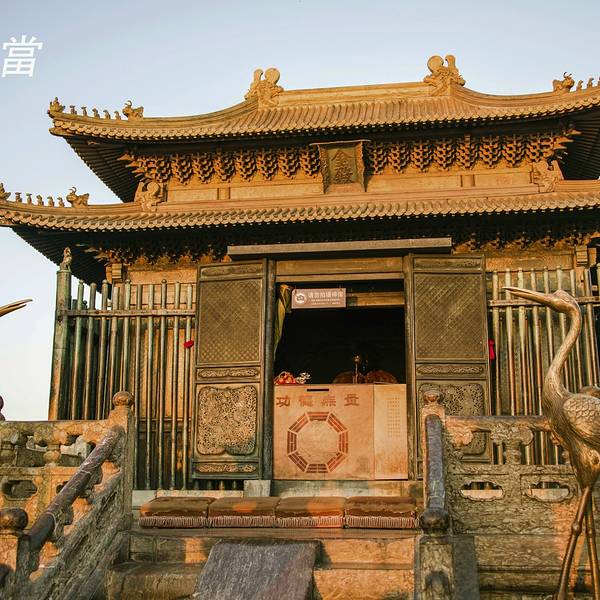 这座金殿建在武当山群峰中最雄奇险峻的天柱峰上,具有“天上瑶台金阙“的效果坐落在武当山主峰一天峰柱上的金殿,是我国最大的铜铸鎏金大殿,建于明永乐十四年(1416年)。殿高5.5米,宽5.8米,进深4.2米。殿内栋梁和藻井都有精细的花纹图案。藻井上悬挂一颗鎏金明珠,人称“...坐落在武当山主峰一天峰柱上的金殿,是我国最大的铜铸鎏金大殿,建于明永乐十四年(1416年)。殿高5.5米,宽5.8米,进深4.2米。殿内栋梁和藻井都有精细的花纹图案。藻井上悬挂一颗鎏金明珠,人称“避风仙珠”。传说这颗宝珠能镇住山风,不能吹进殿门,以保证殿内神灯长明不灭。其实山风吹不进是因为殿壁及殿门的各个铸件,非常严密、精确。金殿内有“真武”铜像,重达10吨。殿外是白玉石栏杆台,台下是长约1500米的紫金城。城墙由巨大的长方形条石依山势垒砌而成。这座金殿建在武当山群峰中最雄奇险峻的天柱峰上,具有“天上瑶台金阙“的效果。紫霄宫建于明永乐十一年(1413年),是武当山的主要宫殿,也是保存最完整的建筑之一。共有殿宇、楼阁、廊庑860间,规模宏伟,气派非凡。 展开