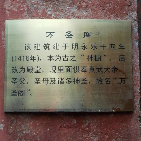 之前还搞不懂太和宫和金顶是什么关系,买票问了一下,原来眼前天柱峰上的这个建筑群就是太和宫,因金殿在其上也被叫成金顶。严格说来下面的建筑群叫太和宫,后面的叫“紫金城”。建于明代永乐十四年,有殿堂道舍等建筑五百一十间,现仅存正殿、朝拜殿、钟鼓楼、铜殿等。