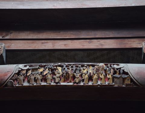 雕刻工艺精细让游客赞叹不已承志堂是宏村保存最完美的大型古民居建筑,谣传打造承志堂一共花了60万两,此处的主人是曾经的宏村首富汪定贵,因此也被称为“民间故宫”。堂内随处可见的雕刻精细的浮雕,这些浮雕也是有故事的,例如正厅横梁上...承志堂是宏村保存最完美的大型古民居建筑,谣传打造承志堂一共花了60万两,此处的主人是曾经的宏村首富汪定贵,因此也被称为“民间故宫”。堂内随处可见的雕刻精细的浮雕,这些浮雕也是有故事的,例如正厅横梁上的浮雕,描绘的是当时清代朝政图,中间为重臣,左侧都是文官,右侧都是武官。雕刻工艺精细让游客赞叹不已。 展开