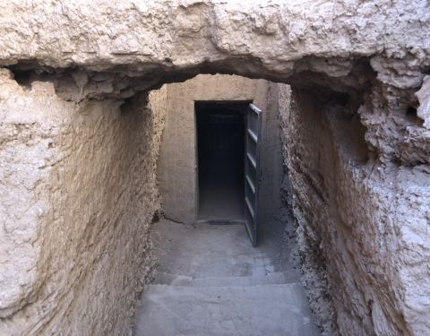 感觉这个不是很值,就能看三个墓室,登上现代的阁楼还看不到远处的村庄,更不用说高昌古城了,只能沿步道参观三座墓,一座有尸体,胆小勿入,壁画不能拍照